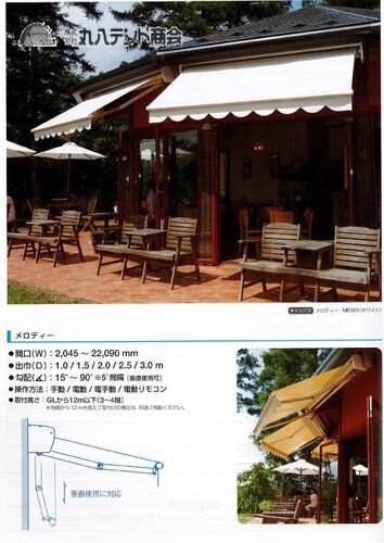 レストランやカフェなどに設置できる、おしゃれなオーニングテントも施工しております。 こちらのオーニングテントは、フリルがついていてかわいらしい印象になりますね!