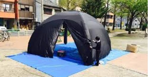 こちらはエアドームテントになります。 短時間で即座に設置及び収納をすることができます。 1人で簡易的に設置できます。 ご希望など御座いましたら、お気軽にお申し付け下さい。