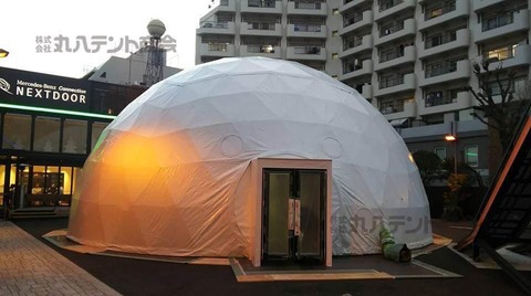 2023-01-18 【ドーム型テント】好奇心をくすぐる形 こんにちは!今回はドーム型テントのご紹介です。テントは自由自在に様々な形のものを作ることができます。丸型のテントは、見た人が思わず入りたくなるようなテントですよね!今流行のグランピングやテントサウナにもぴったりな商材です。ぜひお気軽にお問い合わせください!